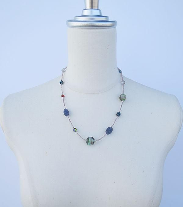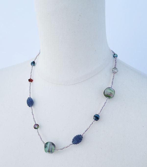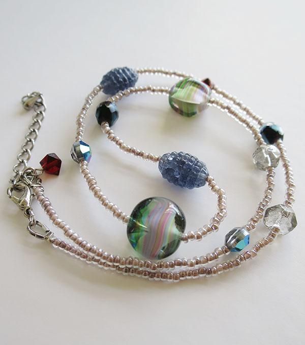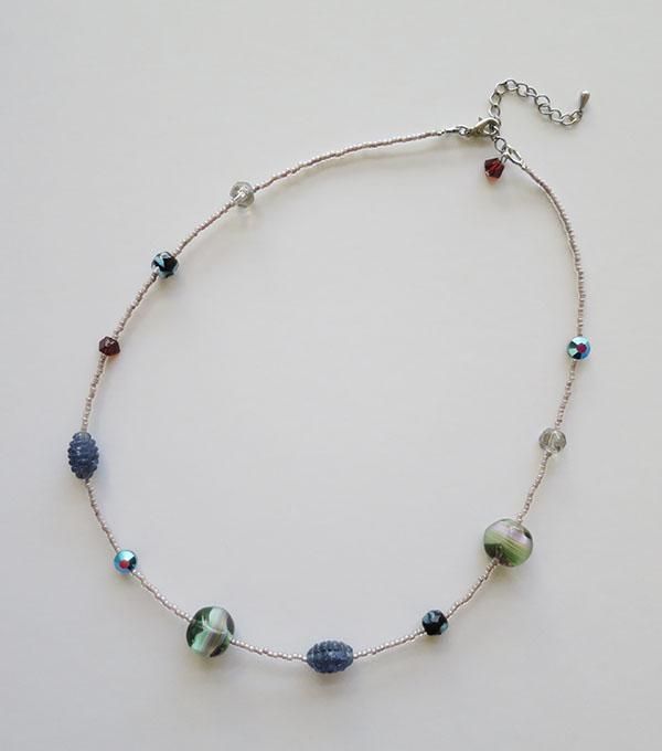 アクセントビーズパックとチェコ製シードビーズで作るネックレス。
