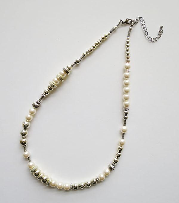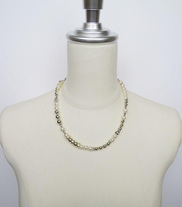 メタリックパーツと樹脂製パールで作るネックレス