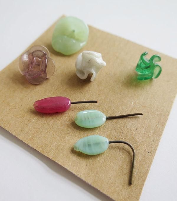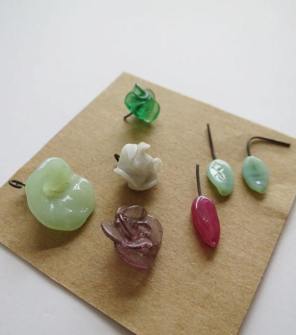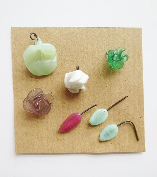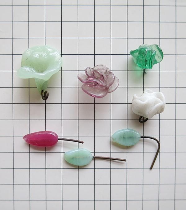ガラスのモチーフにワイヤーが枝のように刺してあるので私たちは「枝付きパーツ」と呼んでいます。