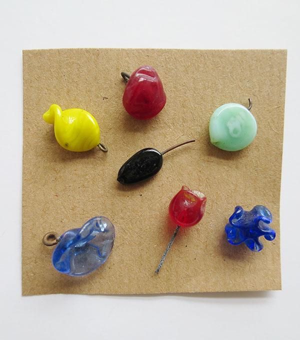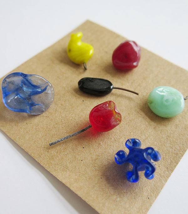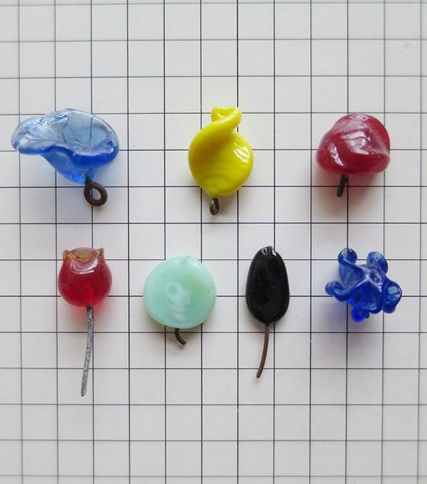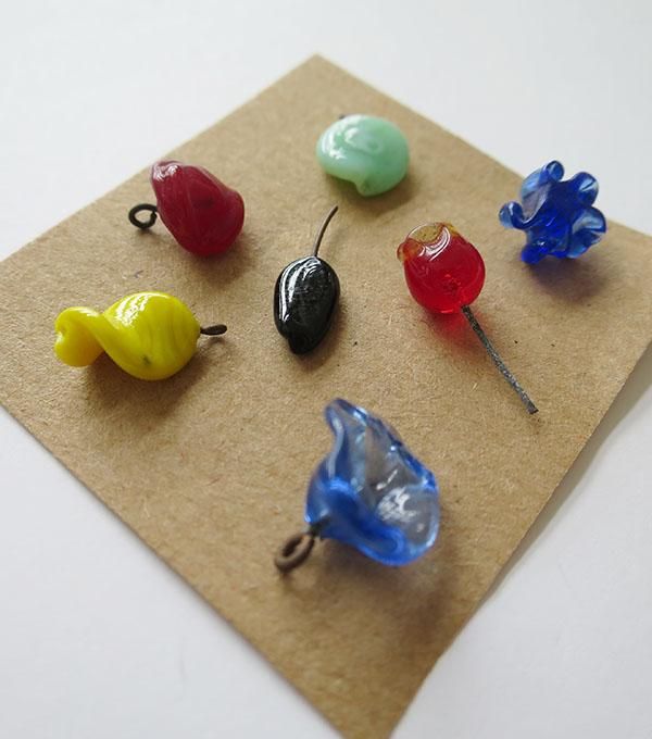 ガラスのモチーフにワイヤーが枝のように刺してあるので私たちは「枝付きパーツ」と呼んでいます。