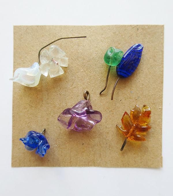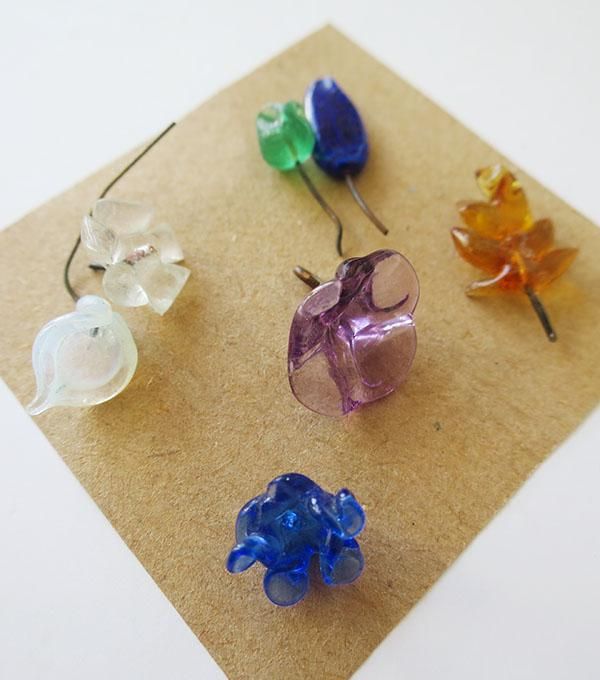 ガラスのモチーフにワイヤーが枝のように刺してあるので私たちは「枝付きパーツ」と呼んでいます。
